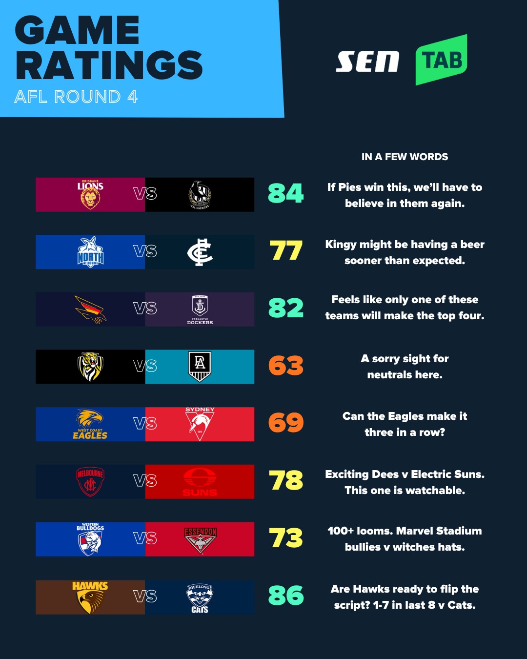 SEN.com.au’s Game Ratings are back for another week.