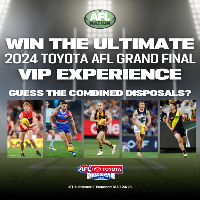 Entries close at first bounce of the first game that one of the above selected players are participating in. The weekly winner will be contacted on the Monday after each round of the 2024 Toyota AFL Season.