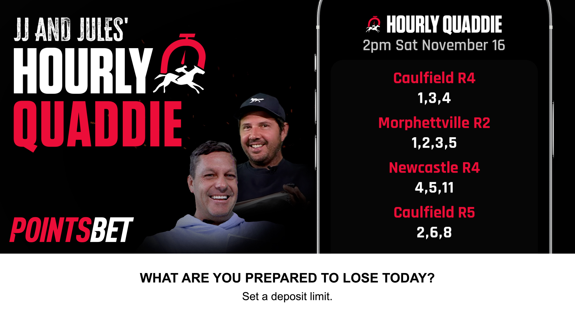 For further information on the Hourly Quaddie, please visit PointsBet product page: https://support.pointsbet.com.au/hc/en-au/articles/10328125460623-Hourly-Quaddie