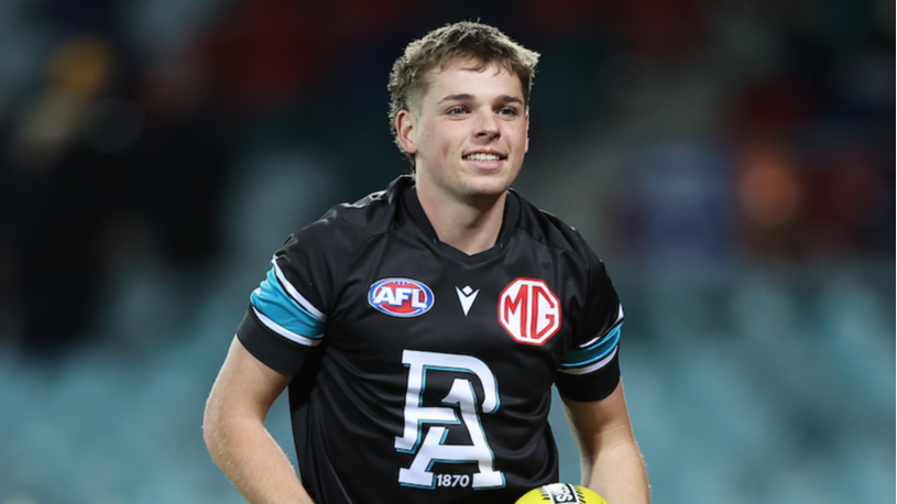 Jackson’s attack on the ball early was fierce and his cleverness around forward 50 stood out as Port piled on five goals to none in the first quarter.