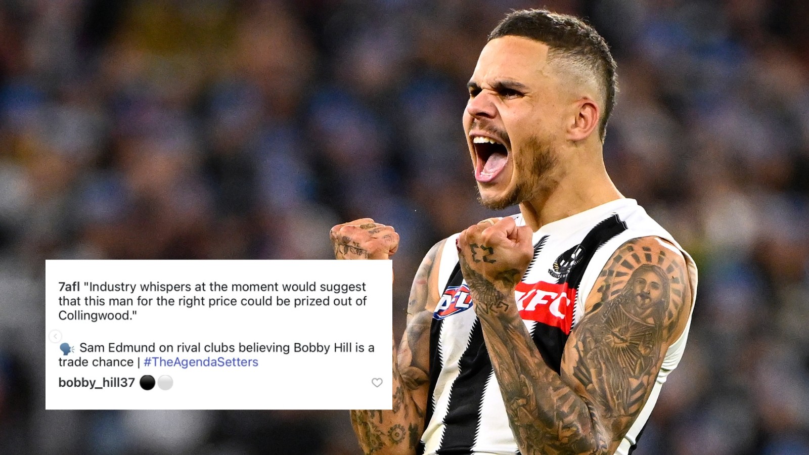 Edmund reported on Seven’s The Agenda Setters on Tuesday night that Hill, for the right price, could be prised out of the Magpies following a difficult season dealing with personal matters.