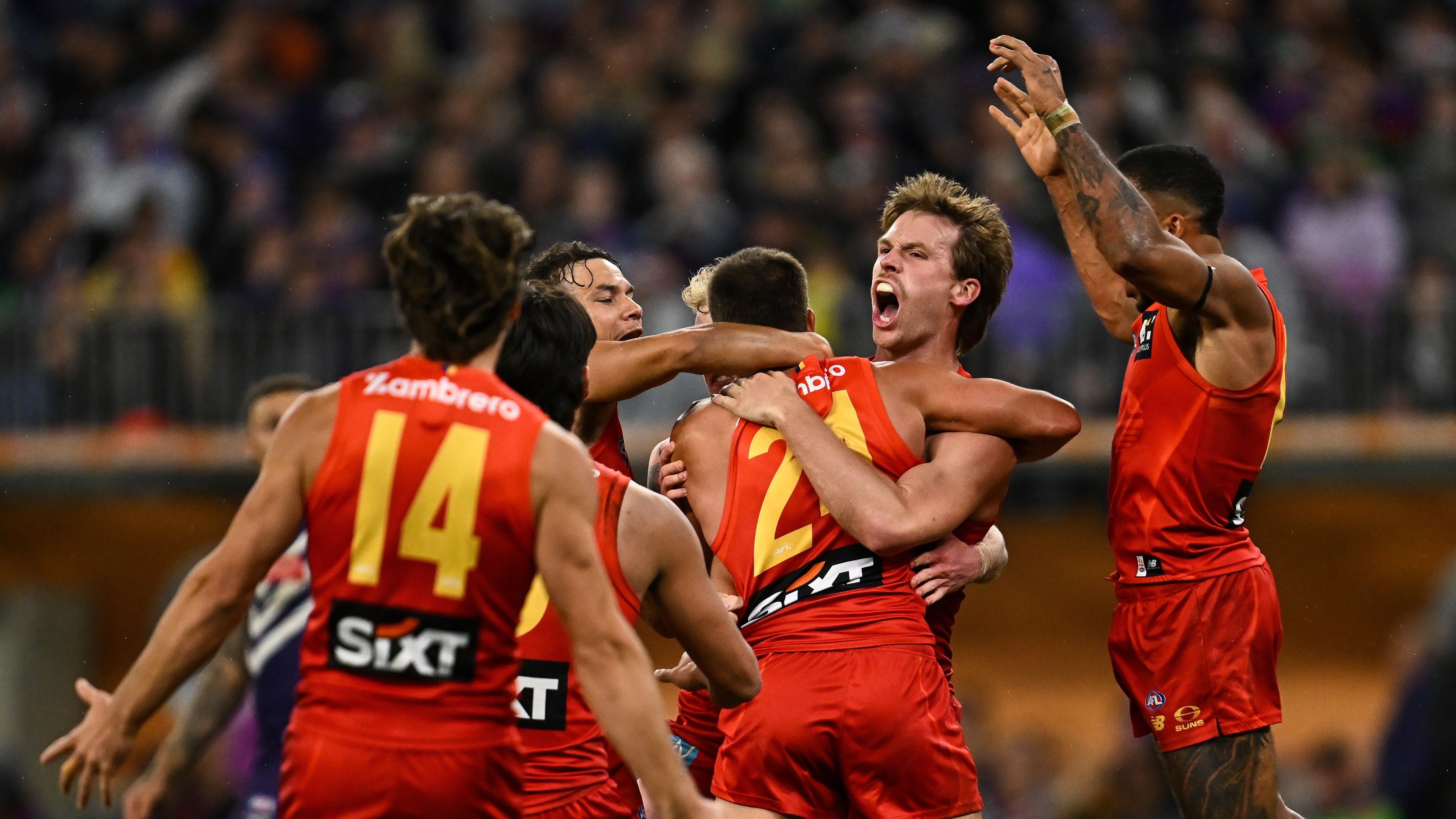 Travelling West, Gold Coast took down Fremantle by a single point, as club legend David Swallow nudged them over the line with a behind in the dying stages at Optus Stadium.