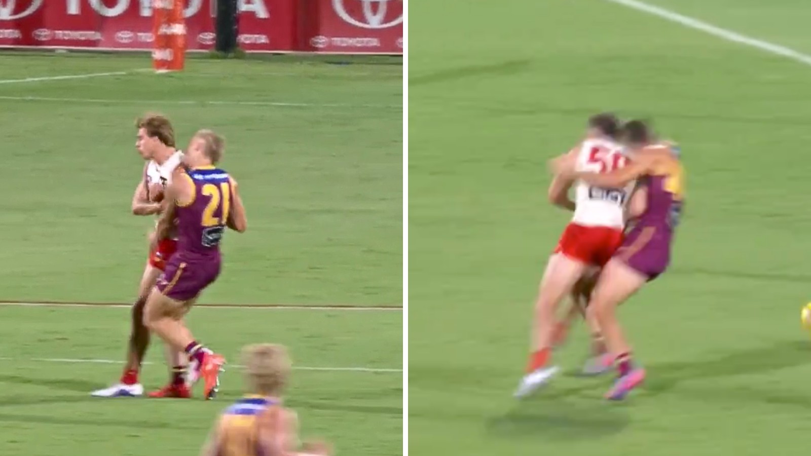 Cornes: “He does everything right until the last little bit. Watching on replay, he slows down, he’s considered in his approach, but then at the last minute, he just clumsily hits him in the head.