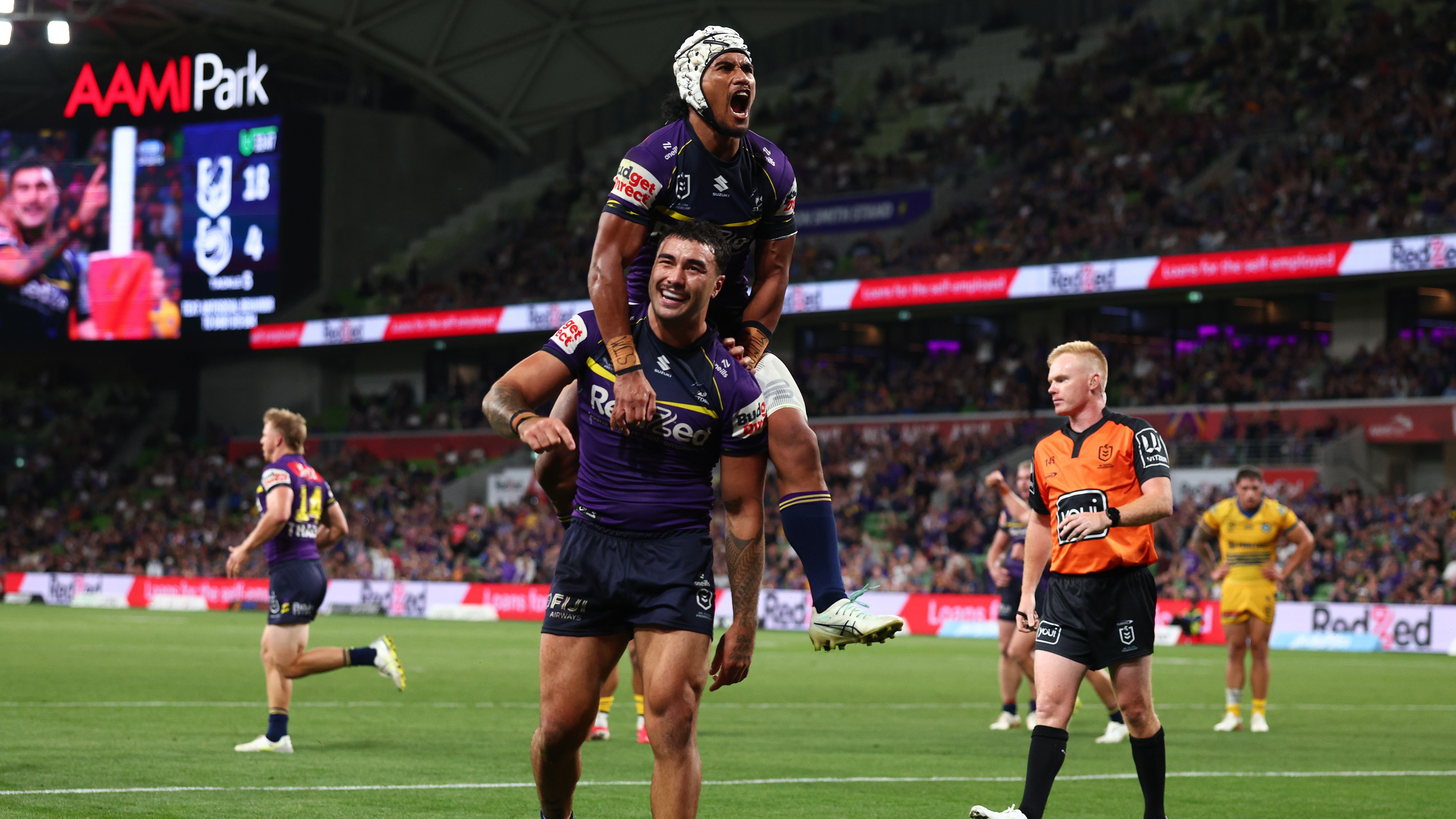 It was a dominant performance by the boys in purple, who benefited from the error-laden Eels committing 17 penalties compared to Melbourne’s eight, alongside eight ruck infringements compared to the Storm’s five.