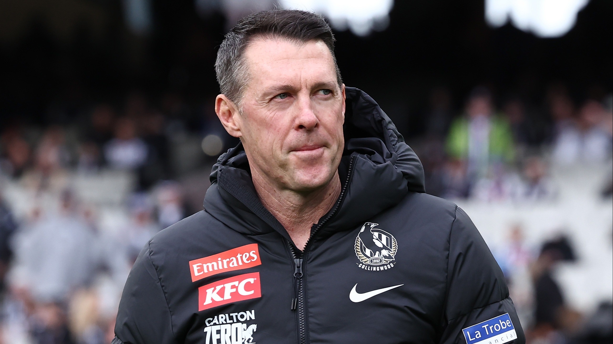 The Collingwood coach was not in his vehicle, which was parked, and is thankfully unhurt.