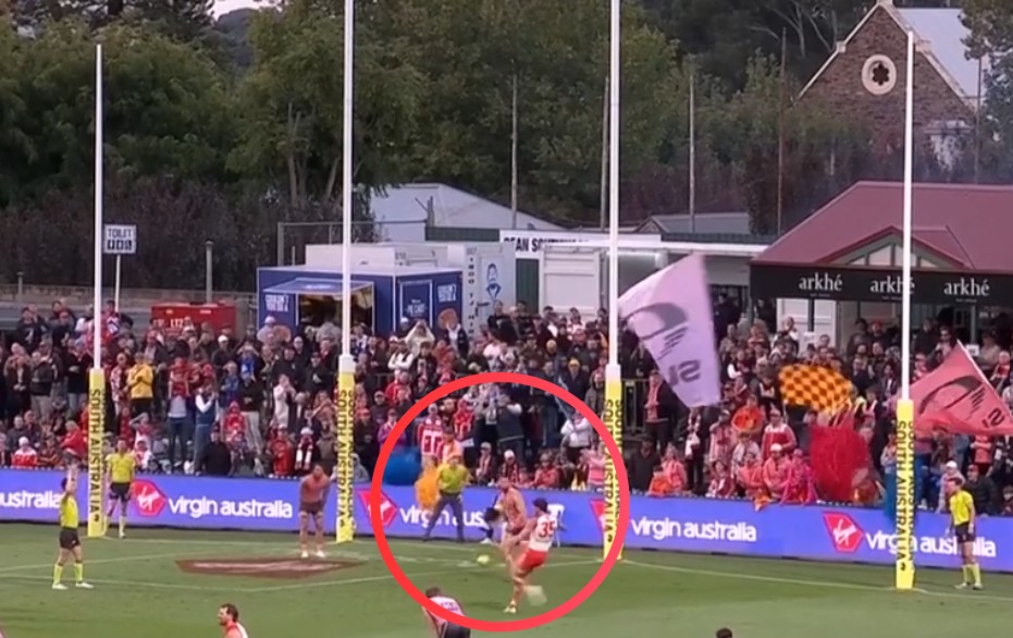 In the third quarter against the Gold Coast, Curnow had a real “you can’t miss from there” moment as he kicked from the goal square from his non-preferred left foot.