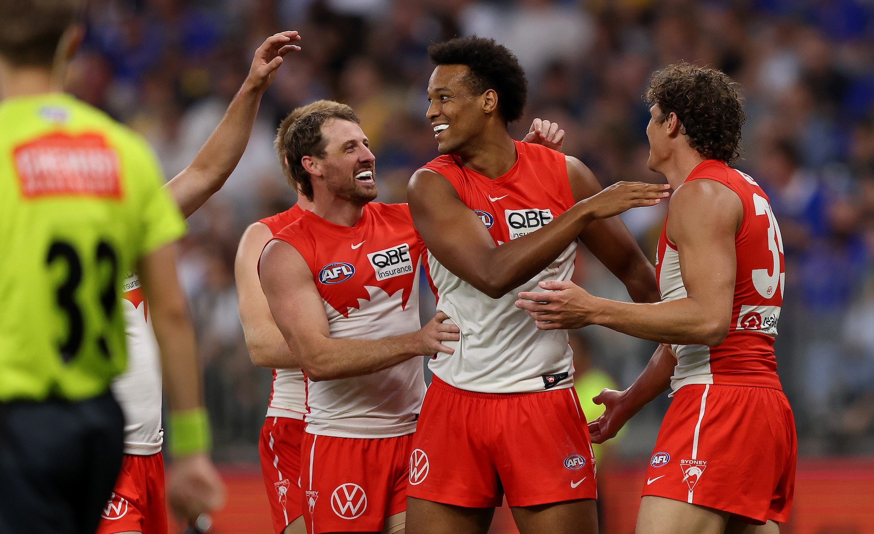 Amartey penned a three-year deal back in 2023 and is now due to go again, but there is likely to be a significant difference between what he will demand and what the Swans can offer given they’ve recently spent up on Charlie Curnow and the likes of Chad Warner, Nick Blakey, Isaac Heeney and Errol Gulden are on big money.